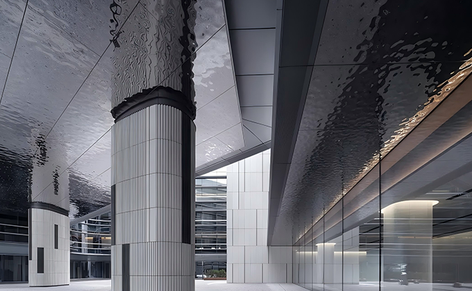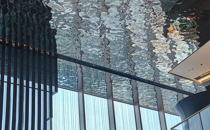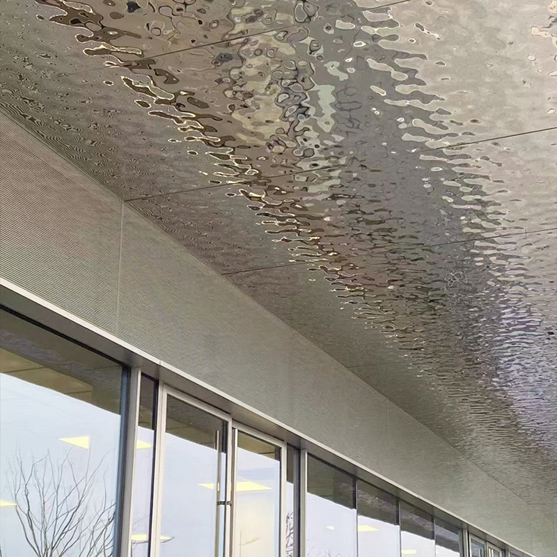 BWT D001 Large water ripple stainless steel sheet for ceilings exceeding 5m, this panel adds luxury and natural elegance to architectural spaces.